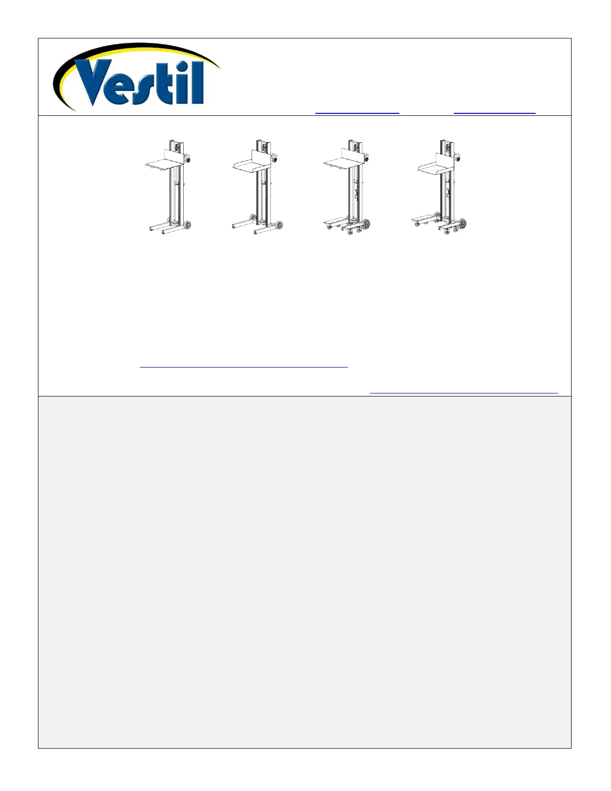 Additional copies of this instruction manual may be downloaded from https://www.vestil.com/page-manuals.php.