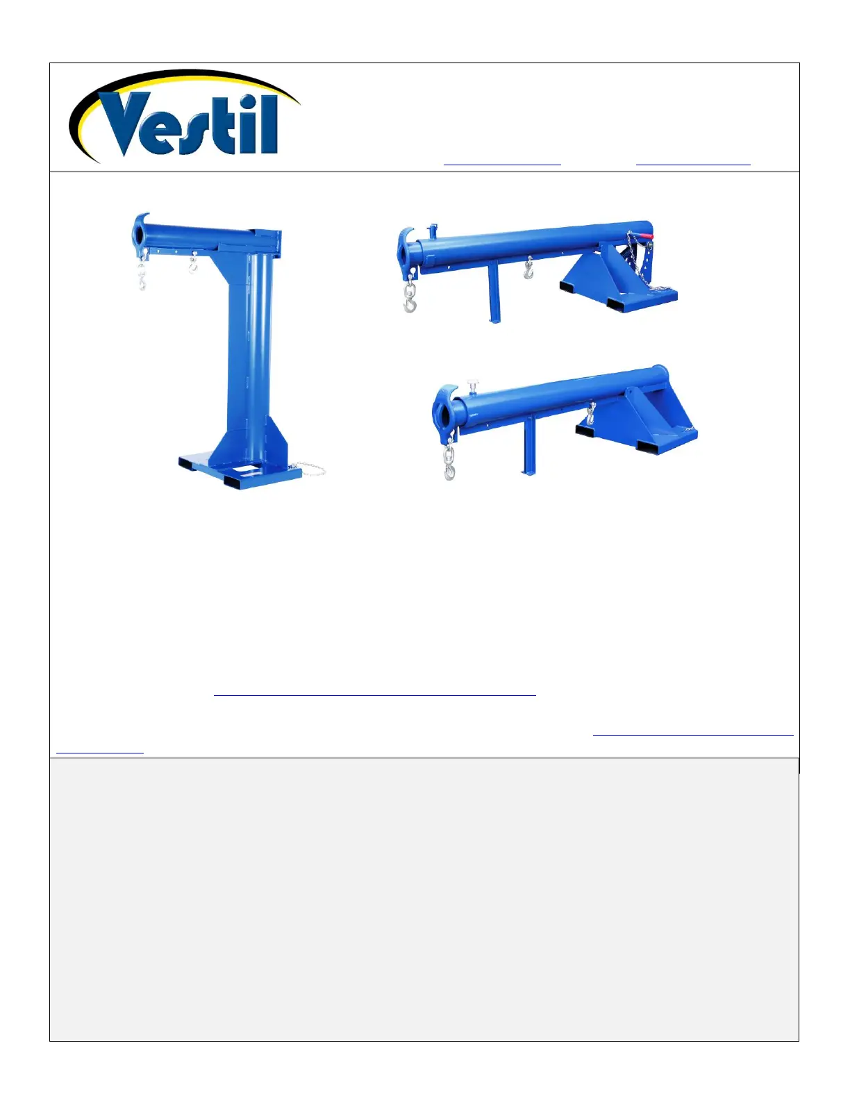 Additional copies of this instruction manual may be downloaded from https://www.vestil.com/page-