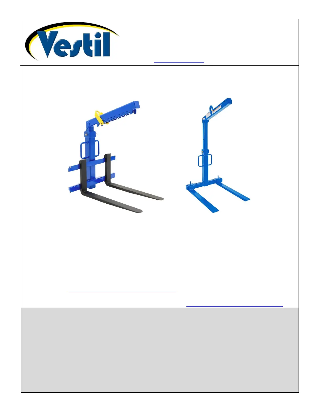 DO NOT modify the product in any way UNLESS you first obtain written approval from Vestil. Unapproved