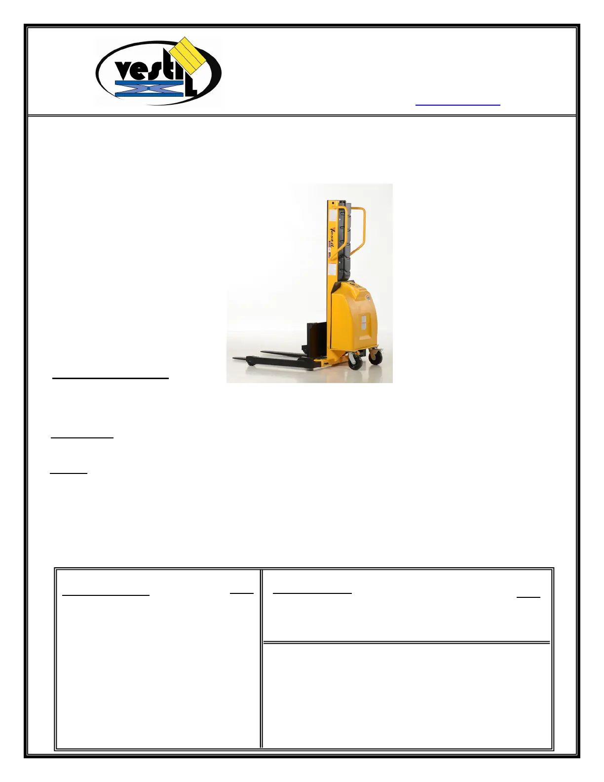 Gaffeltruck Vestil Manualer