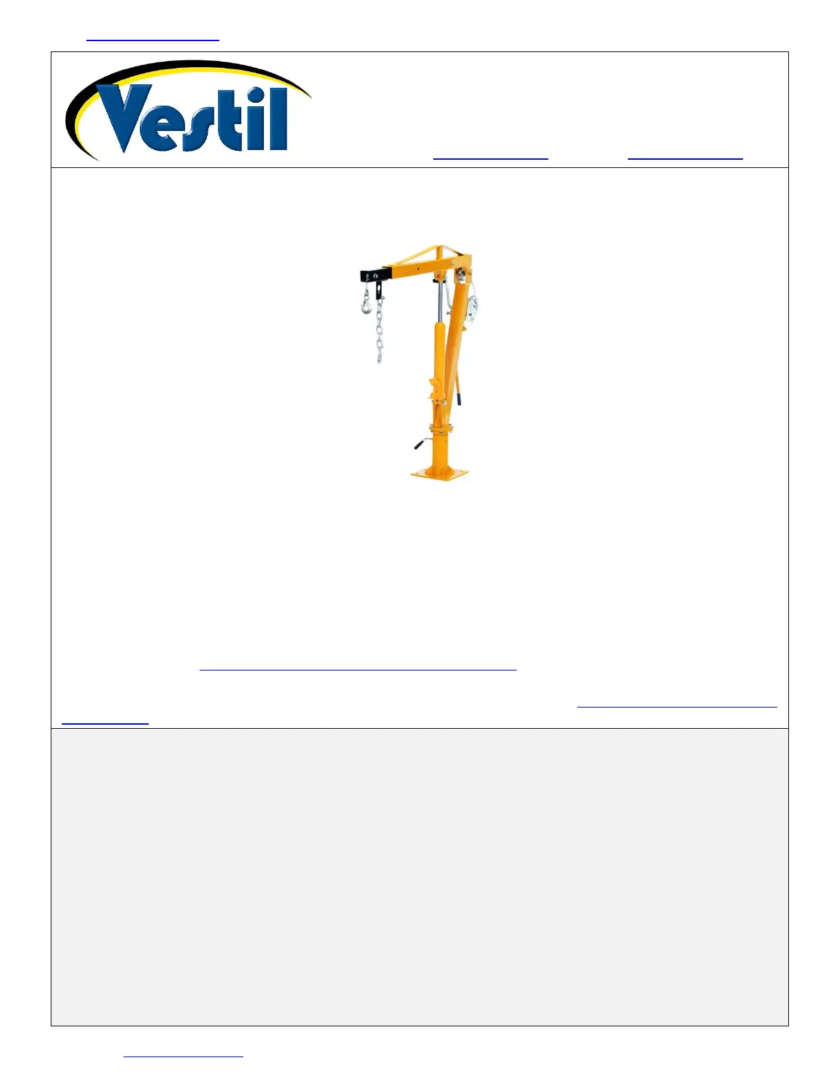 Additional copies of this instruction manual may be downloaded from https://www.vestil.com/page-