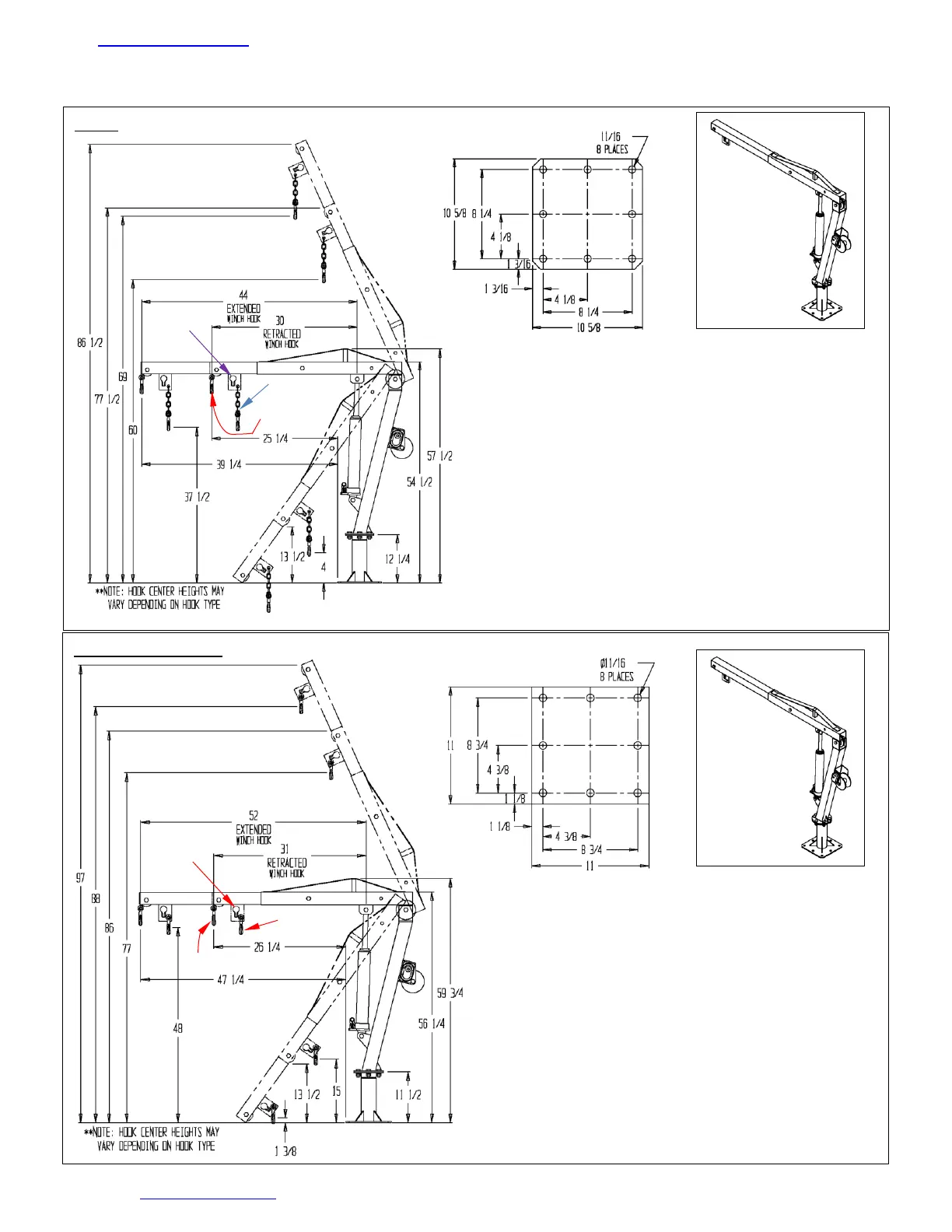 Winch hook heights: