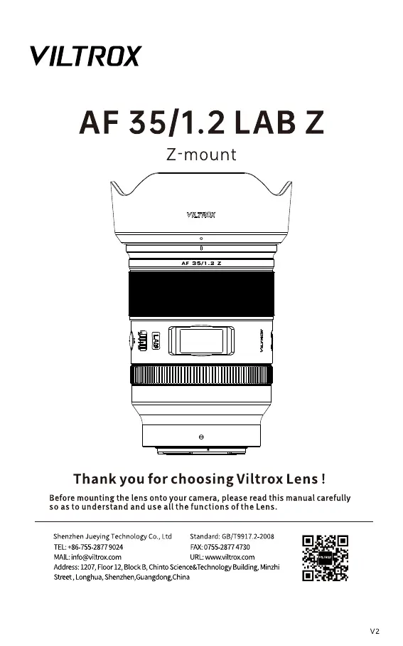 Viltrox AF 35/1.2 LAB Z Manual