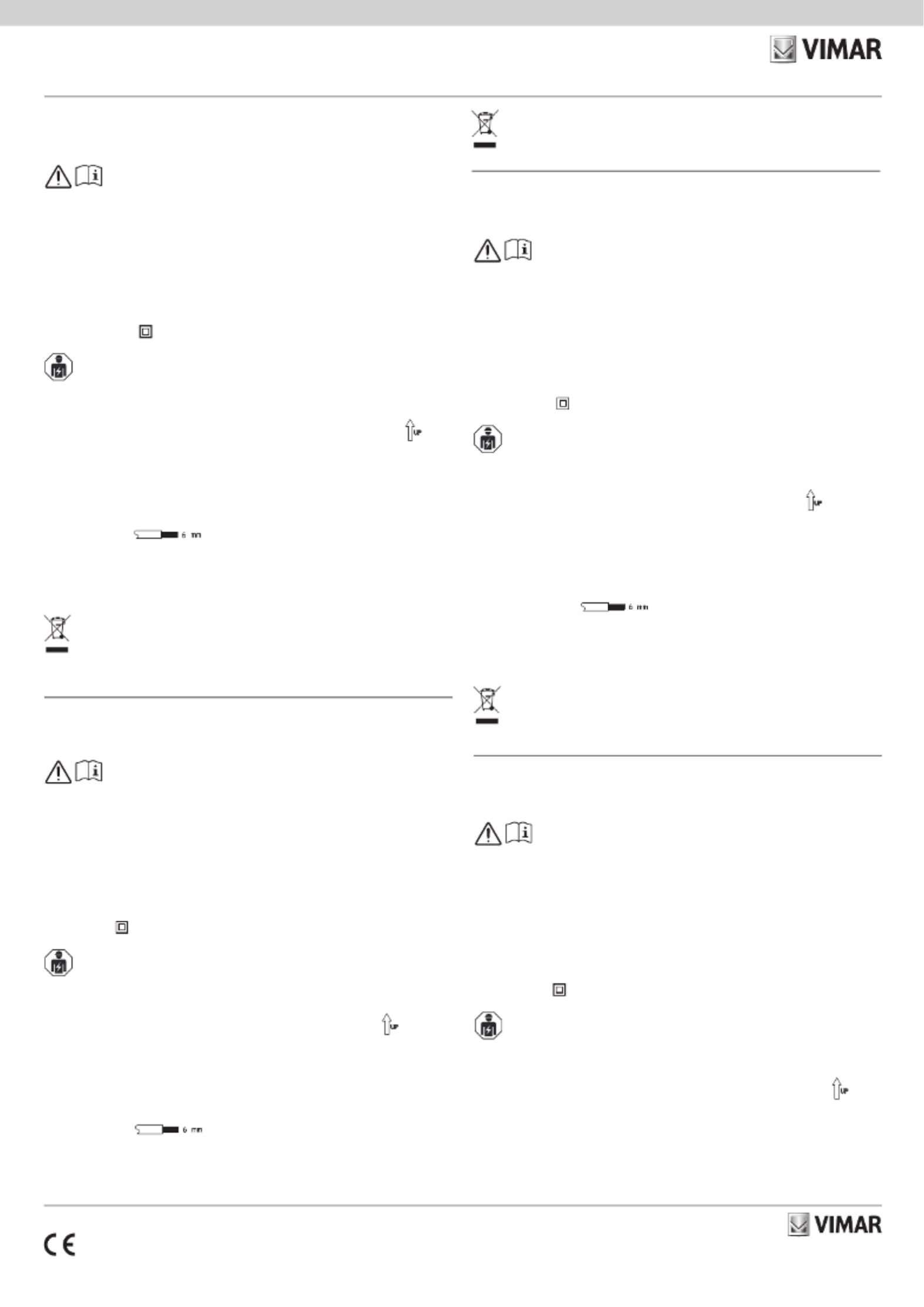 • An easily accessible omnipolar disconnection switch with a contact gap of at least 3 mm must be installed