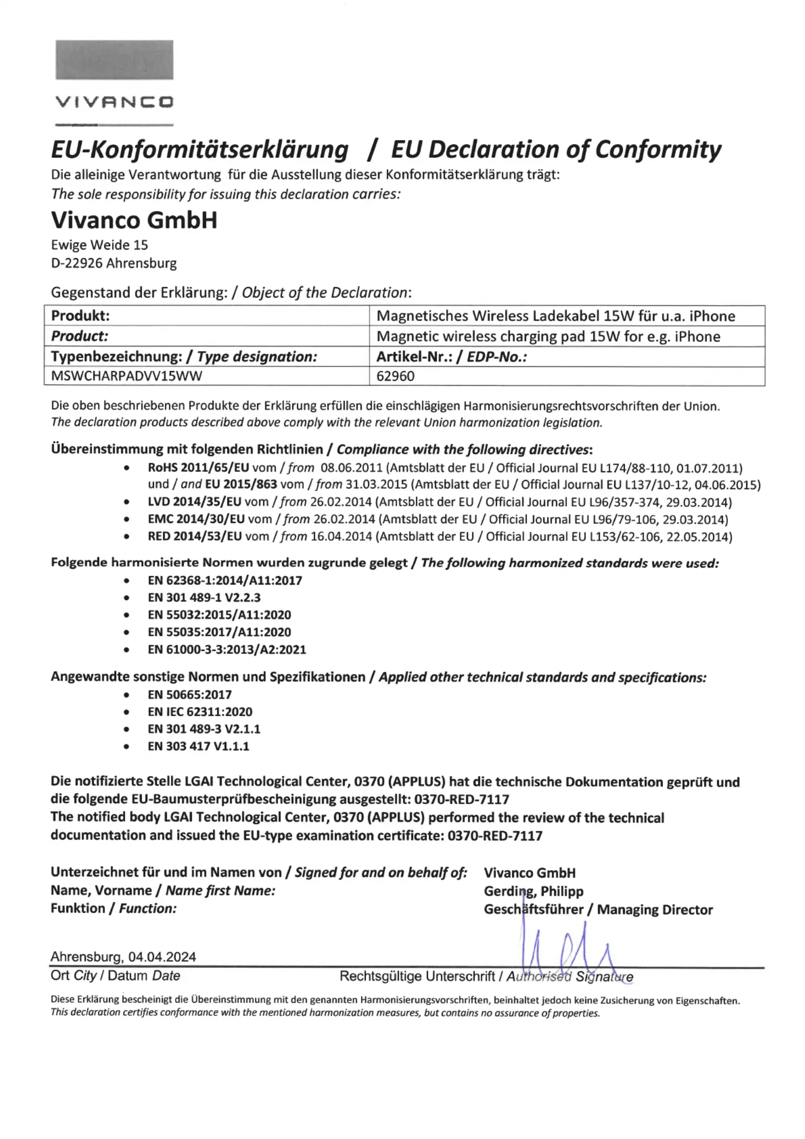 Læs gratis den danske manual til Vivanco MSWCHARPADVV15WW (1 sider) i kategorien Batterioplader. Denne vejledning er vurderet som hjælpsom af 2 personer og har en gennemsnitlig bedømmelse på 5.0 stjerner ud af 1.5 anmeldelser.