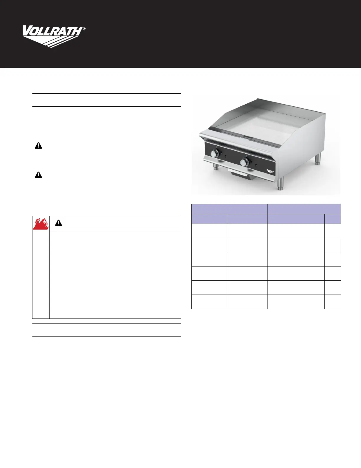 Grillplade Vollrath Manualer