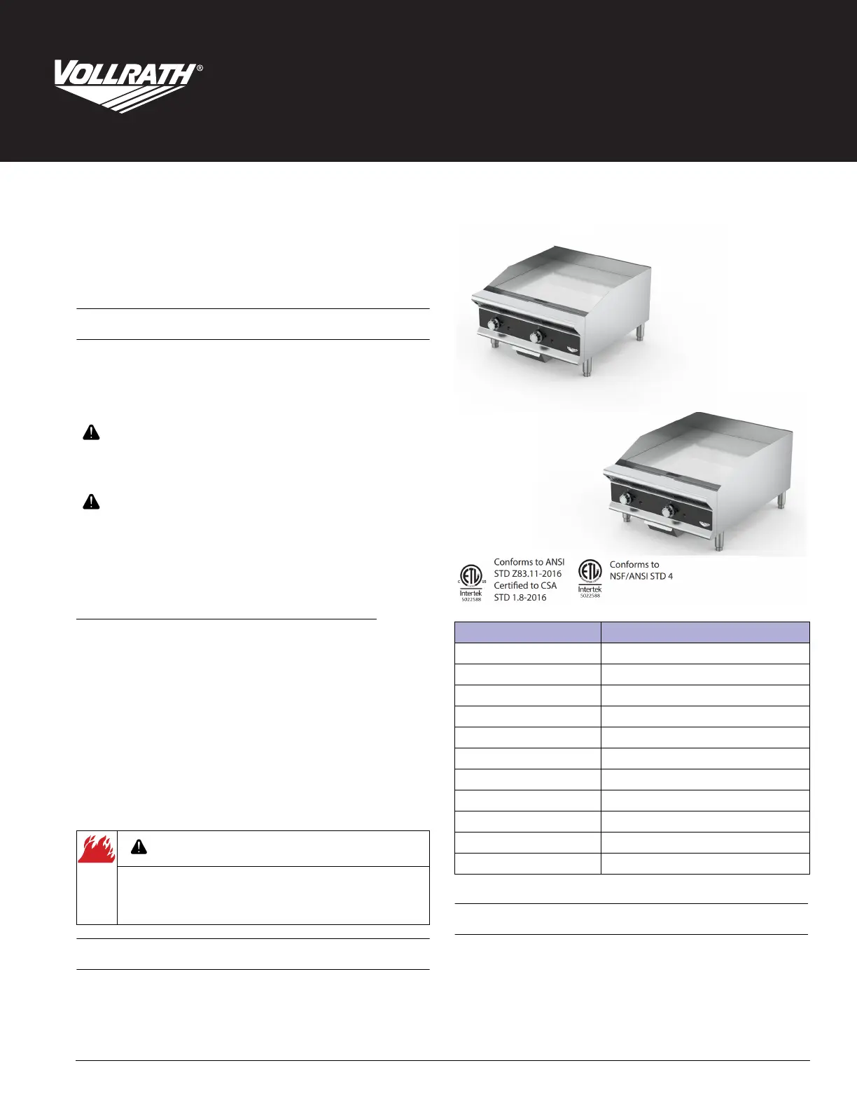 Grillplade Vollrath Manualer