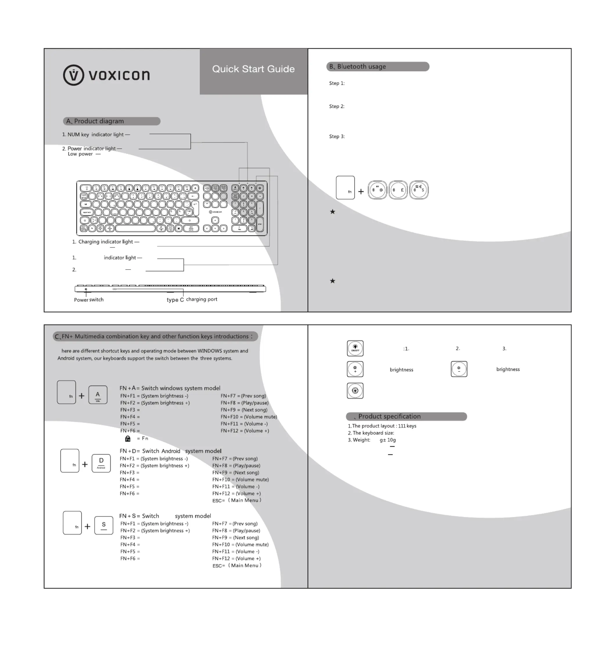 Læs gratis den danske manual til Voxicon DK-PX1-BT (1 sider) i kategorien Tastatur. Denne vejledning er vurderet som hjælpsom af 12 personer og har en gennemsnitlig bedømmelse på 4.9 stjerner ud af 6.5 anmeldelser.