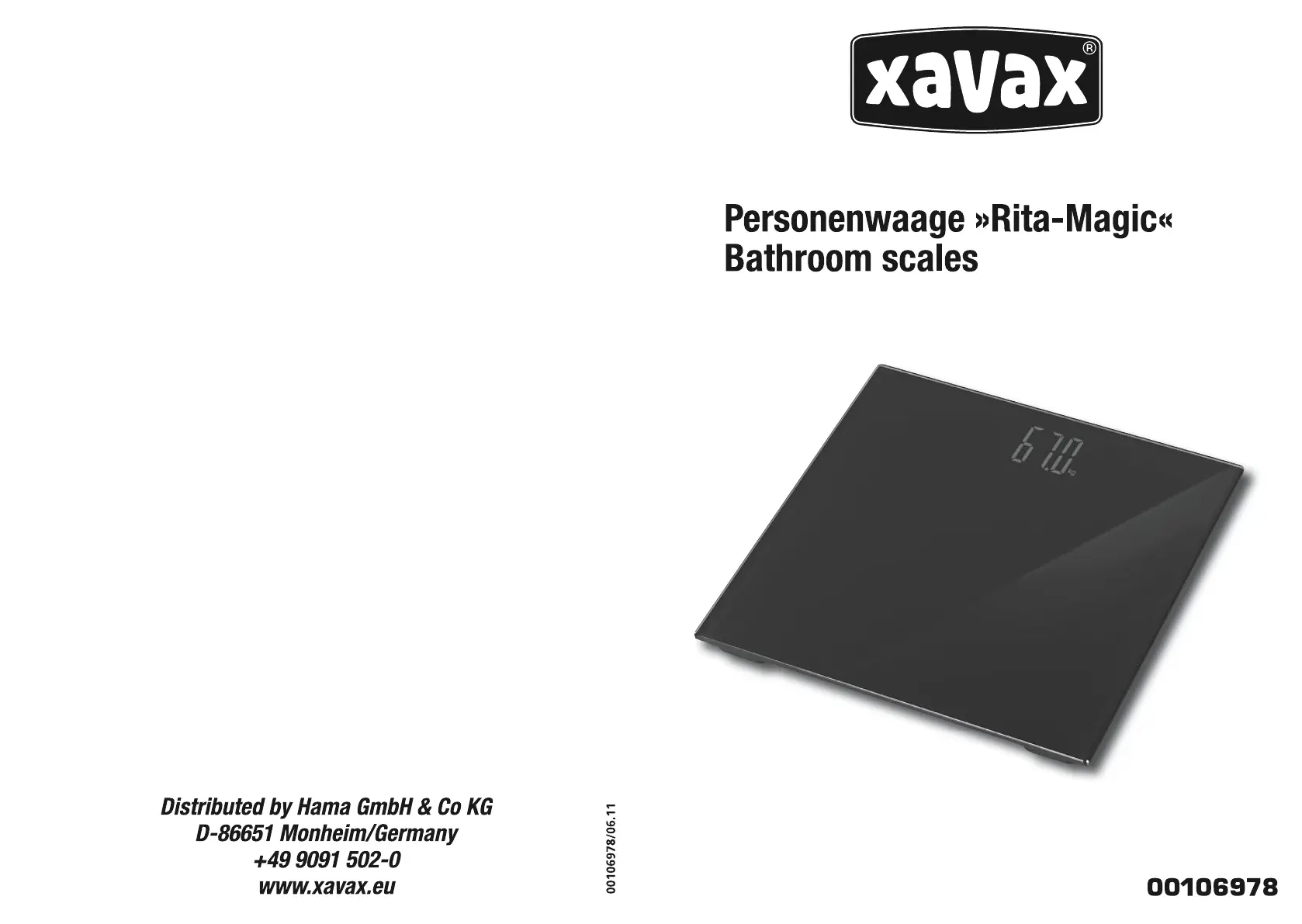 Læs gratis den danske manual til Xavax Rita Magic (5 sider) i kategorien Vægt. Denne vejledning er vurderet som hjælpsom af 3 personer og har en gennemsnitlig bedømmelse på 4.7 stjerner ud af 2 anmeldelser.