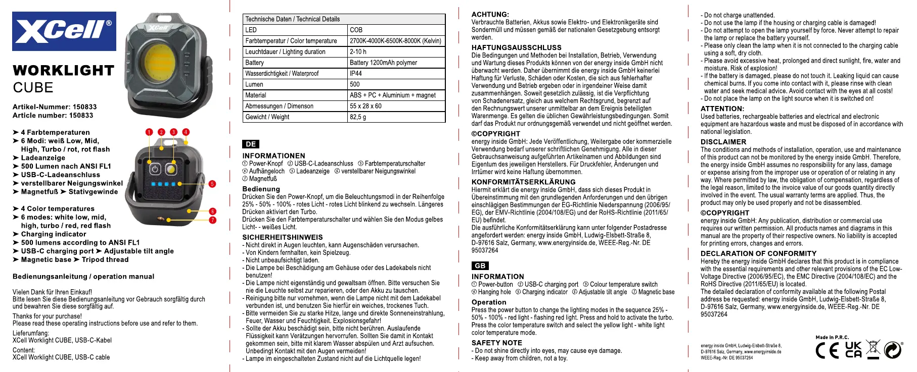 XCell Worklight CUBE Manual