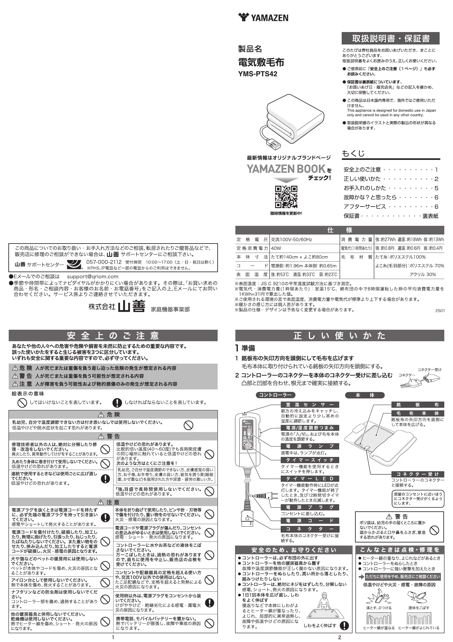 Læs gratis den danske manual til Yamazen YMS-PTS42 (2 sider) i kategorien Elektrisk tæppe/pude. Denne vejledning er vurderet som hjælpsom af 2 personer og har en gennemsnitlig bedømmelse på 4.3 stjerner ud af 1.5 anmeldelser.