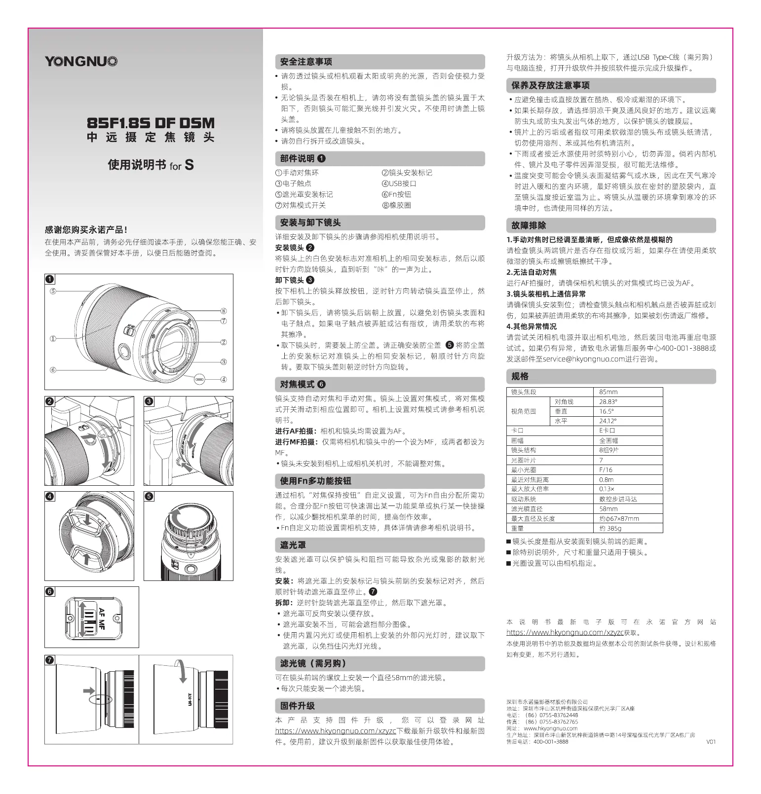 Yongnuo YN85MM F1.8S DF DSM Manual