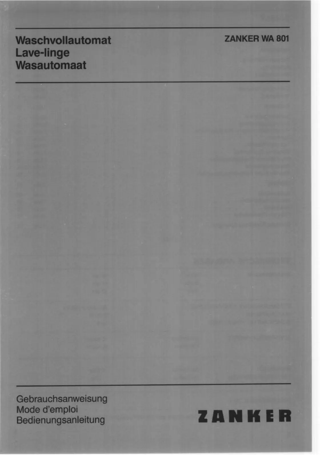 Zanker WA 801 Manual